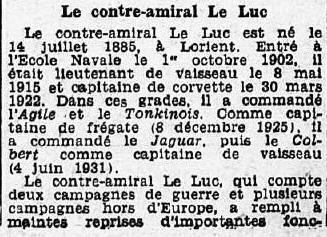 Capitaine de vaisseau le 4 juin 1931, Commandant le croiseur