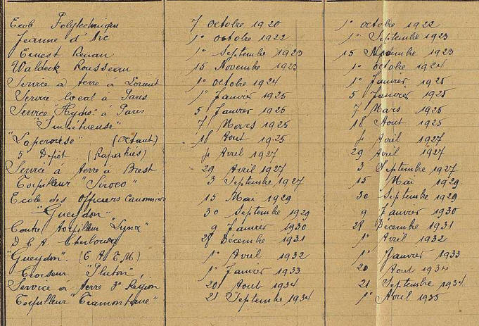 Complément / Etats de service