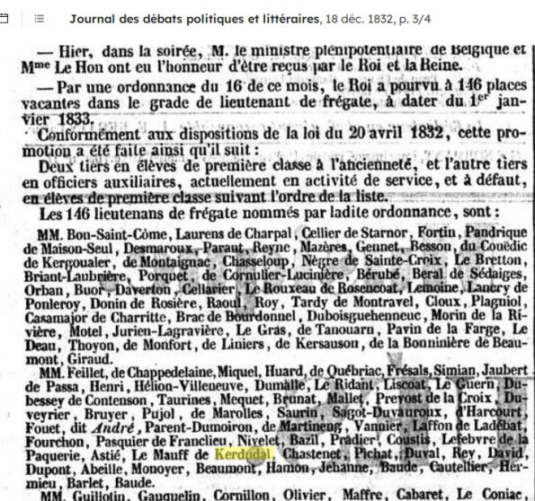 de 2e classe, le 1er mai 1838, annuaire de marine de 1842