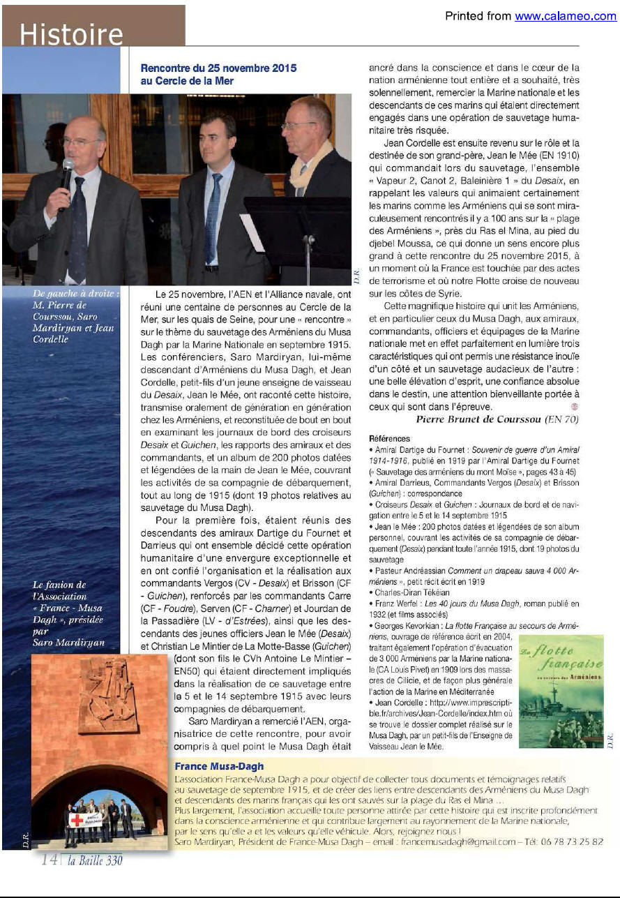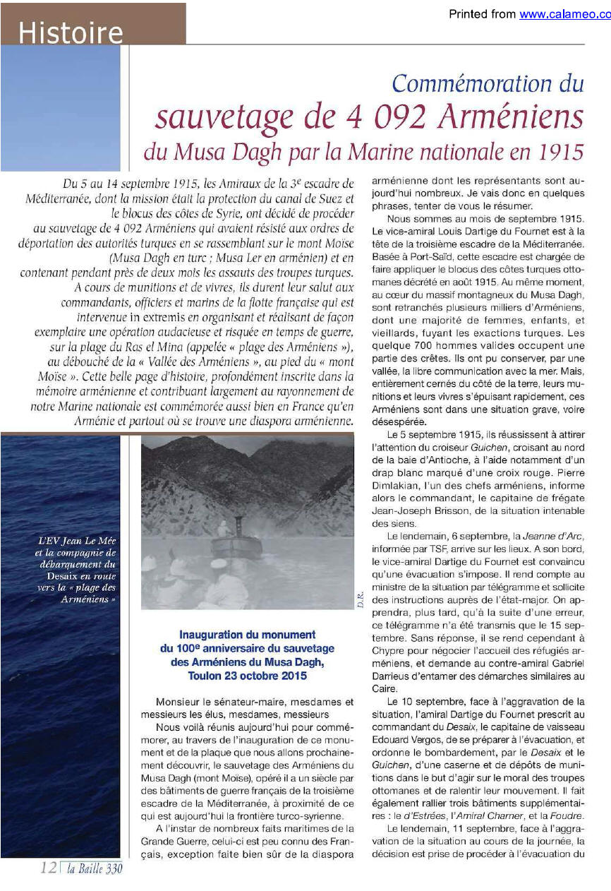 L’histoire de ces Arméniens et de ces Marins est inscrite dans des «