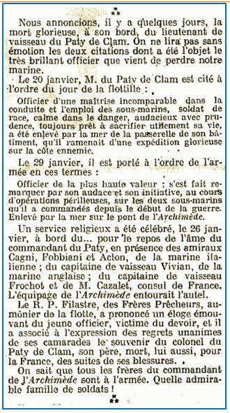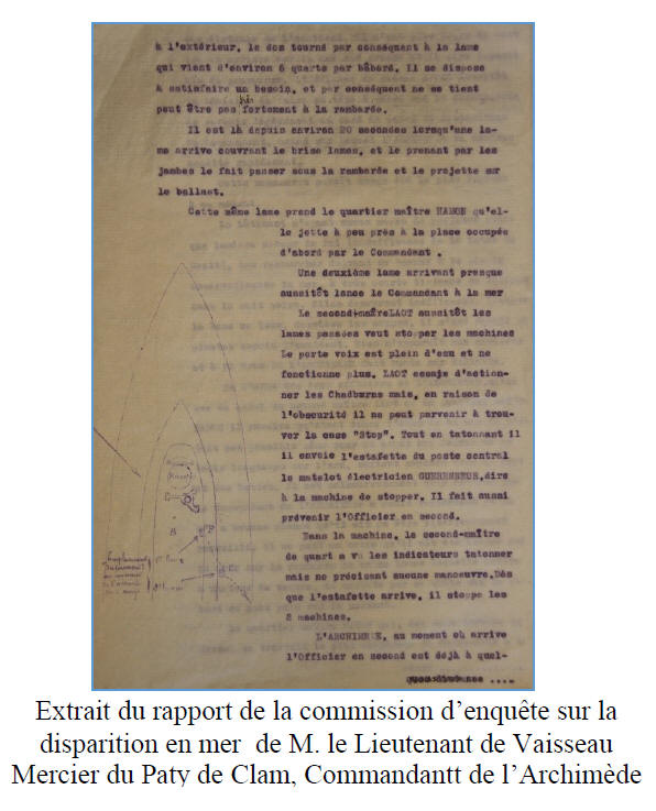 le Lieutenant de Vaisseau Mercier du Paty de Clam, Commandant de