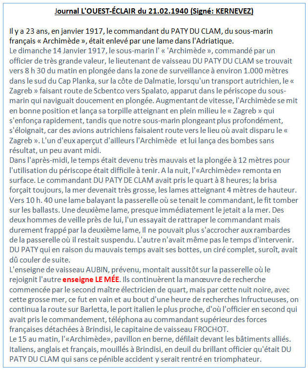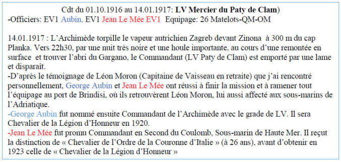 avril 1917 : Jean Le Mée Officier de quart - Archimède