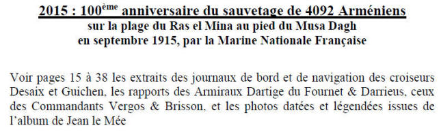 d’évacuation/sauvetage des Arméniens du Djebel Moussa/Mussa Dagh,