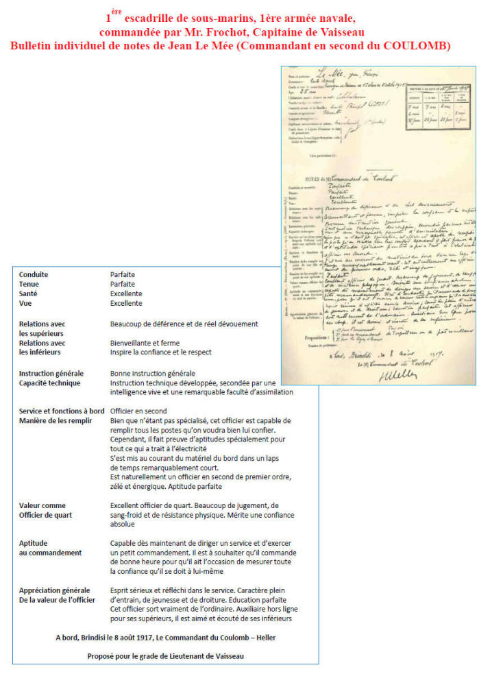 18 mars 1918 : Jean le Mée Officier en second - Coulomb