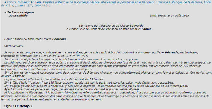visite rédigé par l’enseigne de vaisseau Le Merdy apporte un
