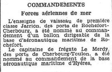 Octobre 1932 / Septembre 1934 Commandant base d’aéronautique