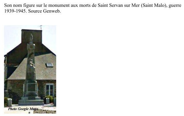 à RENNES (Ille-et-Vilaine) - Disparu le 13 novembre 1942 au large de