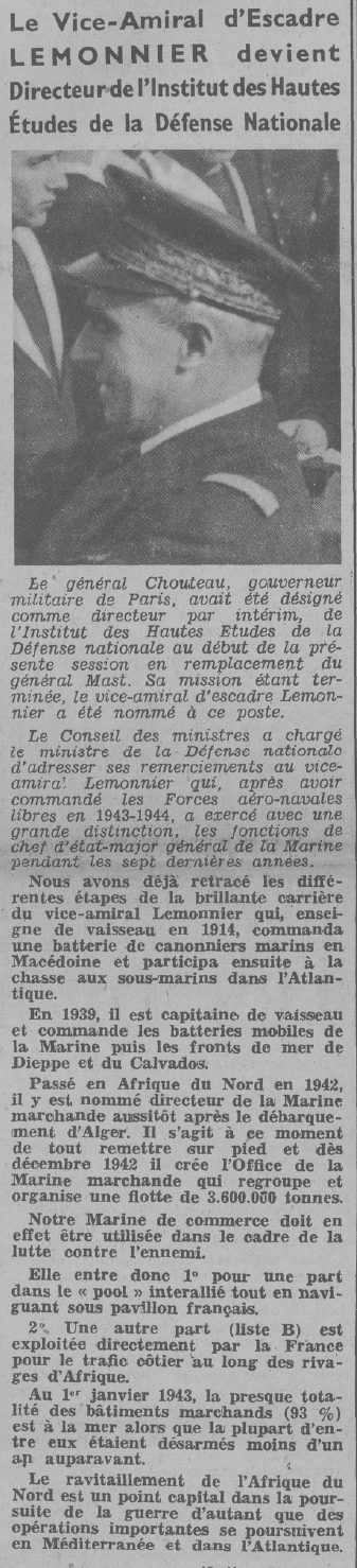 marchande française, il est nommé contre-amiral en 1943 et, en