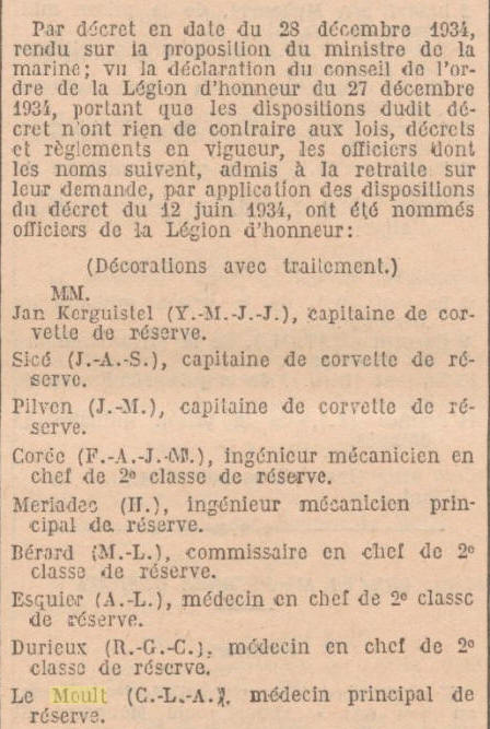 d'Honneur (absence de dossier) en 1934