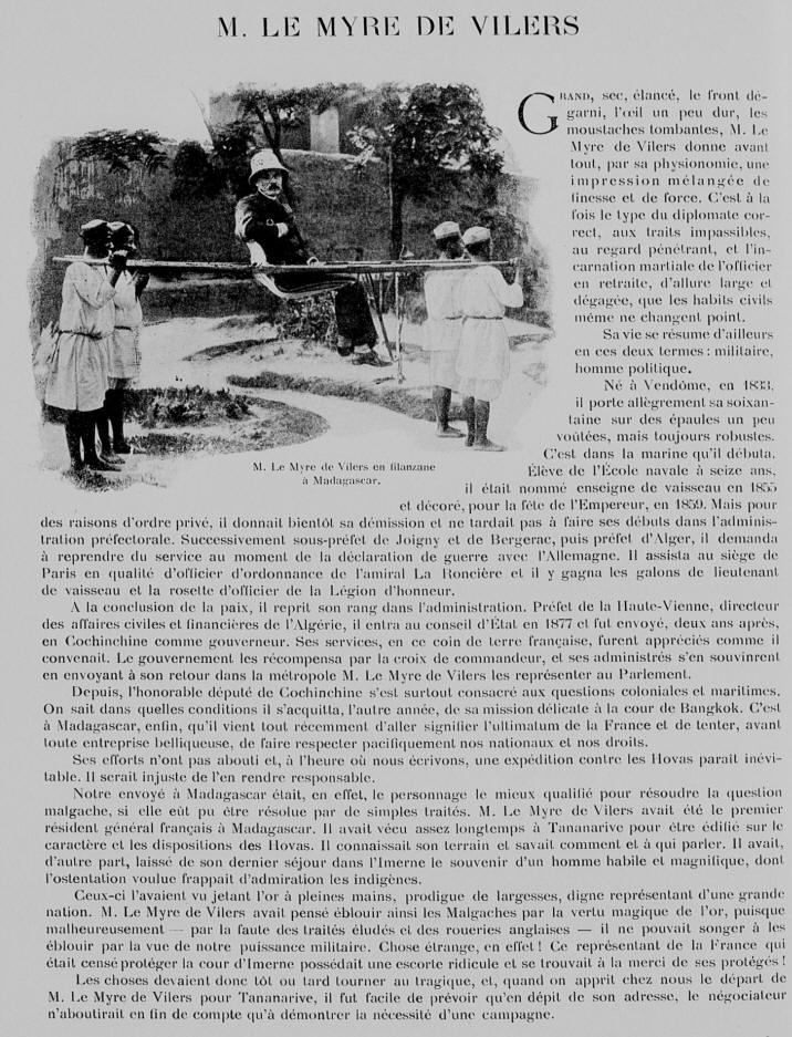 Le Myre de Vilers est un personnage : depuis qu'il a quitté