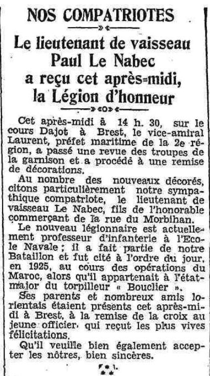 LORIENT (Morbihan) - Décédé le 5 septembre 1954 à ANDERNOS-les-BAINS