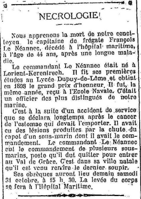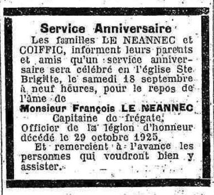 Extrait Le Nouvelliste du Morbihan / 1er novembre 1925