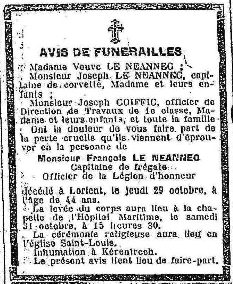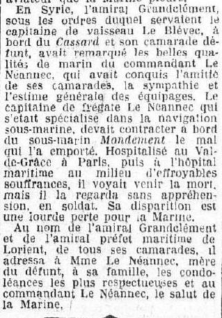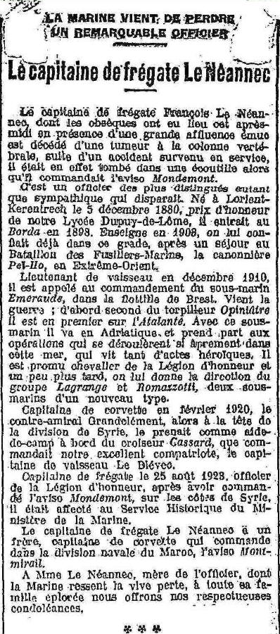 Monsieur le lieutenant de vaisseau Le Néannec de Lorient est nommé