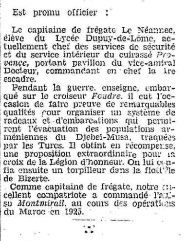 sur le croiseur "DESCARTES", Escadre de Méditerranée (Cdt Charles