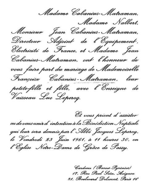 Remerciements famille Lepercq