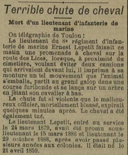 Sous-Lieutenant d'Infanterie de Marine le 15 mars 1886 - Décédé.