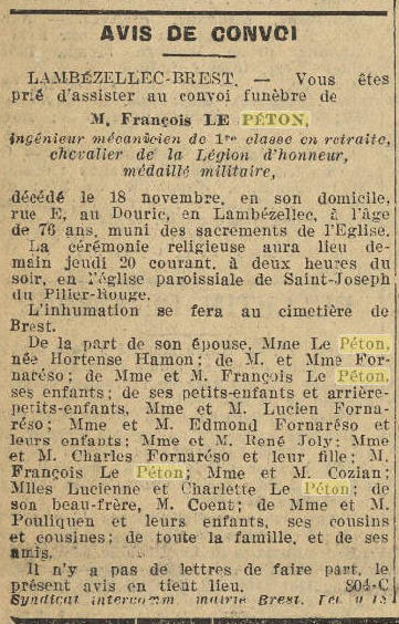 Extrait La Dépêche de Brest / 19 novembre 1930