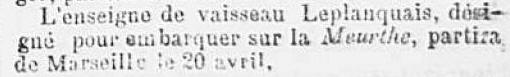 sur le cuirassé "MASSÉNA", Escadre du Nord (Cdt Ernest MARQUER).