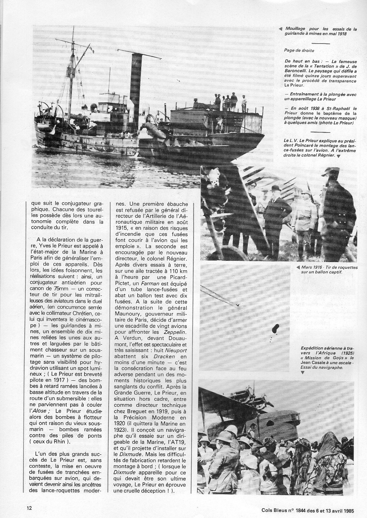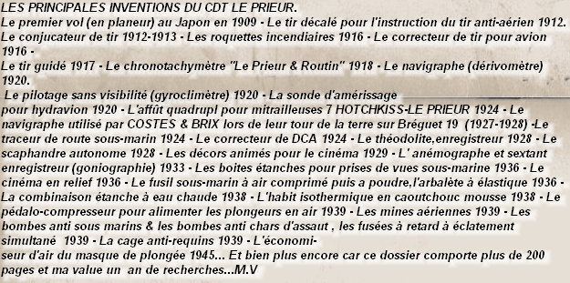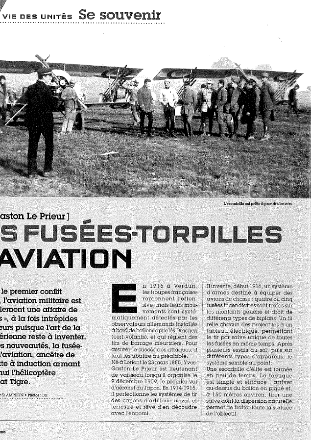 un auto correcteur de tir aérien; en 1916, les fusées Le PRIEUR,
