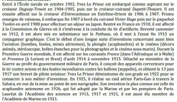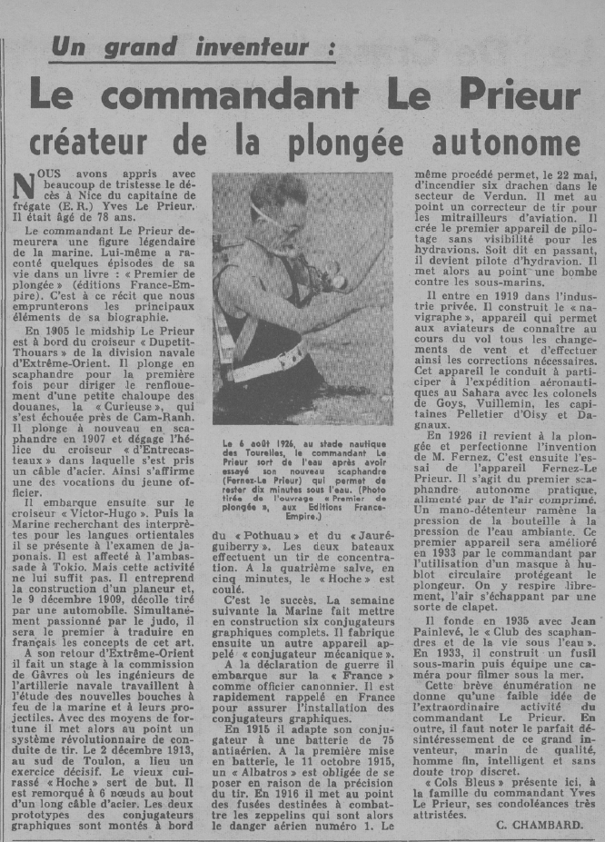 mer (Cdt Jules CHÉRON). Il met au point les premiers conjugateurs de