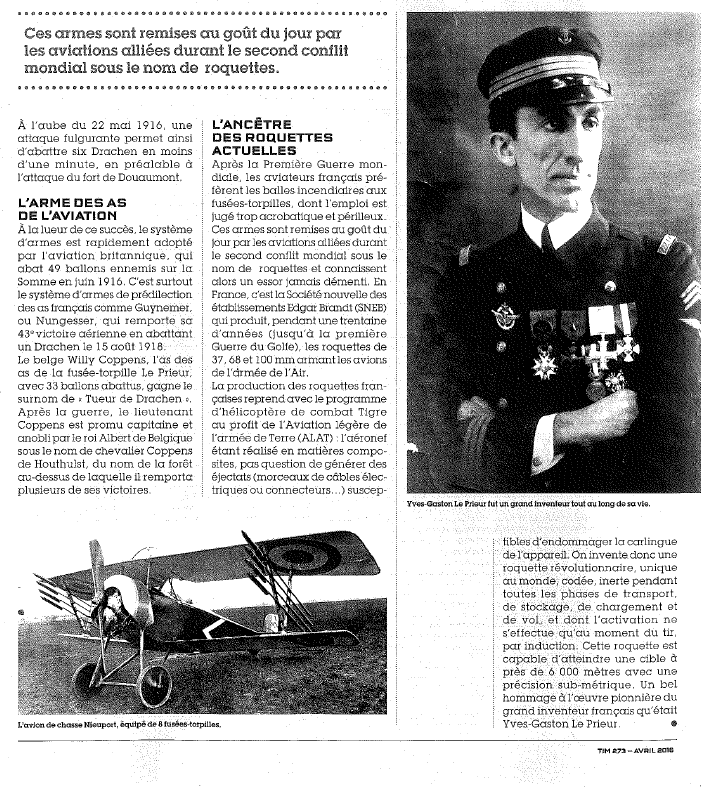 premières roquettes tirées d'avion utilisées dès mai 1916 contre les