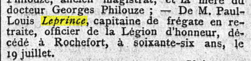 à CHERBOURG (Manche) - Décédé le 18 juillet 1915 à ROCHEFORT