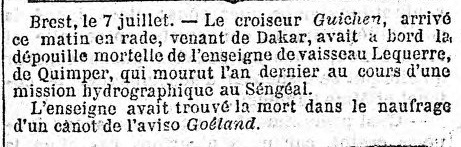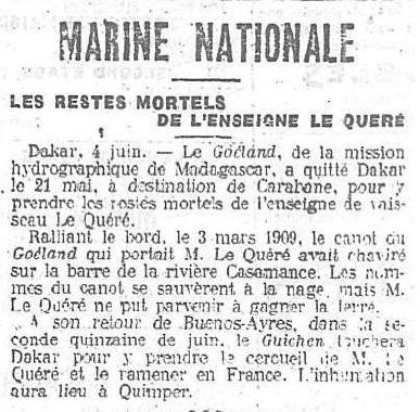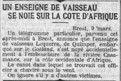 l'aviso "GOÉLAND", en armement à LORIENT (Cdt Maurice Le BAIL).
