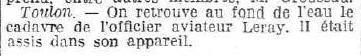 Pilote du HANRIOT HD 2 N° 289, il s'abime en mer avec son appareil.