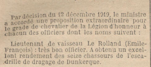 d'Honneur; "en patrouille pendant toute la guerre sur le "DUNOIS". A