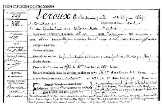 Élève de l'École polytechnique le 1er novembre 1891, opte pour le