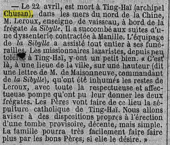 Décédé le 22 avril 1856 à CHOU-SAN