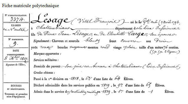 Fils de Pierre Jean LESAGE, avocat et de Elisabeth LARGE
