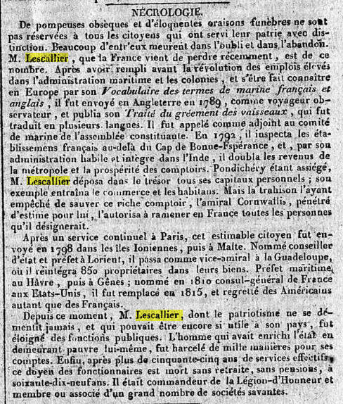 SOURCES : Bio Lescallier : E. Taillemite Dictionnaire des Marins