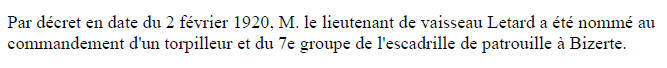 Commandant le torpilleur "TRAMONTANE", en réserve à BIZERTE.