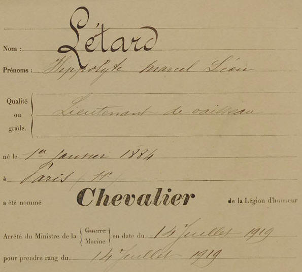 janvier 1909, port LORIENT. Au 1er janvier 1911, sur le