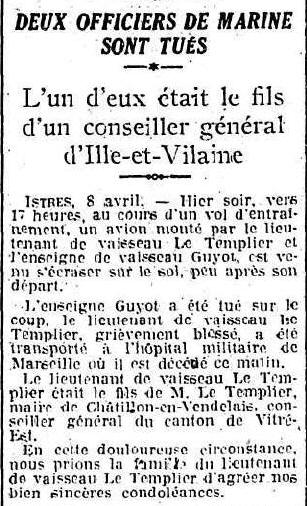 cet Officier était affecté au C.A.M. de BERRE, Pilote d'hydravion.