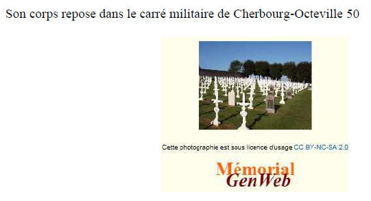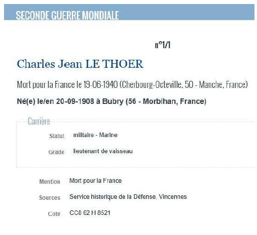 à BURY (Morbihan) - Décédé le 19 juin 1940 à CHERBOURG (Manche).