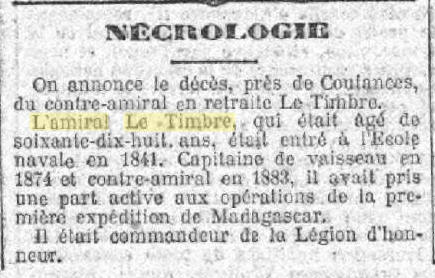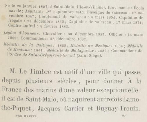 Né le 28 janvier 1827 à SAINT-MALO (Ille-et-Vilaine) - Décédé le 14