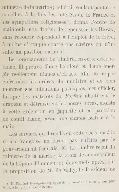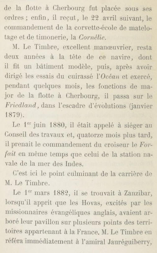 d'Honneur le 28 décembre 1882, étant Commandant du "FORFAIT" à MAHÉ,