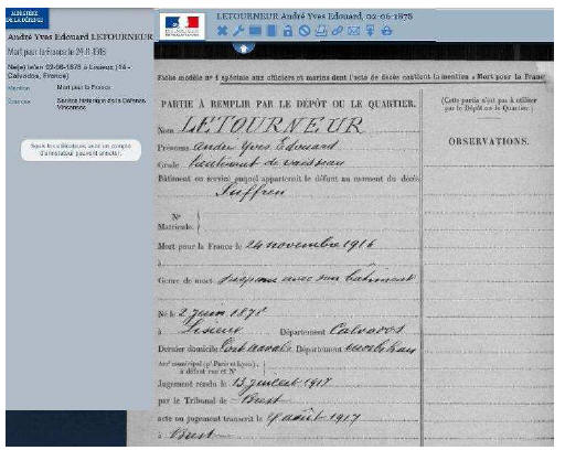 décès le 13 juillet 1917 à BREST, transcrit dans cette commune le 25