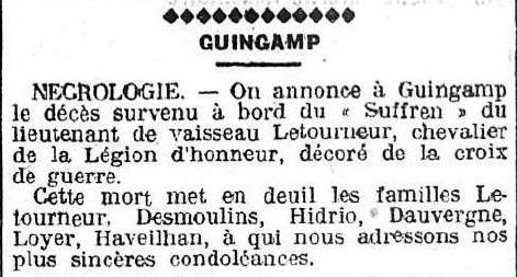 affecté sur le cuirassé "SUFFREN", cet Officier sera victime du