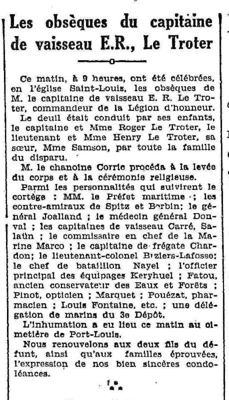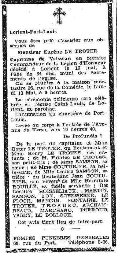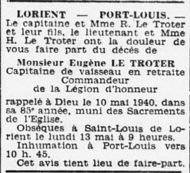 (Morbihan) - Décédé le 10 mai 1940 à PORT LOUIS (Morbihan)