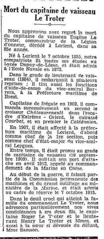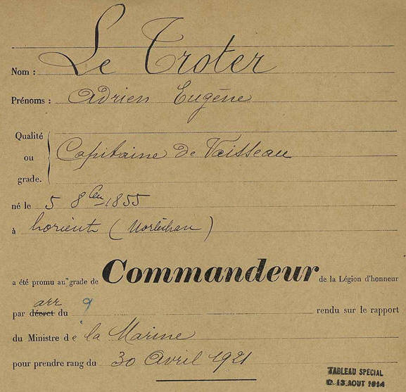 1909, Chef d'État-Major du 3ème arrondissement maritime à LORIENT,