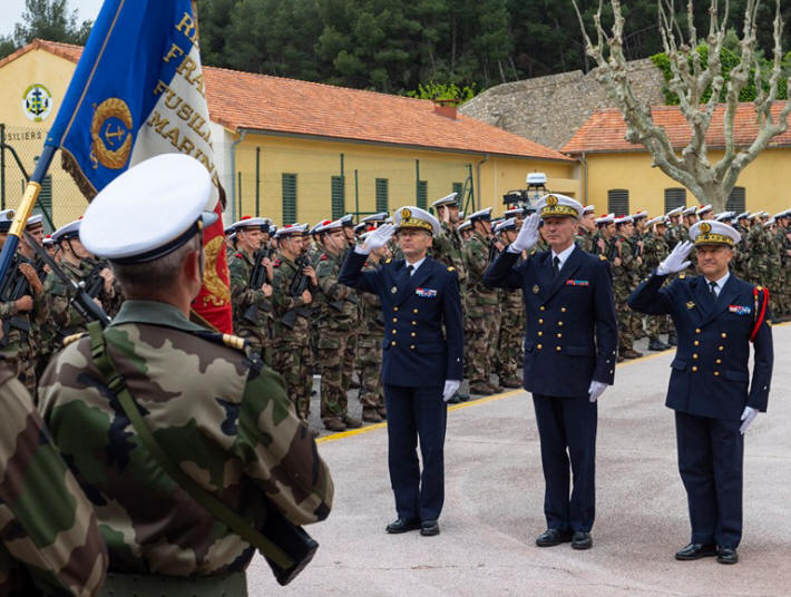 Fusiliers Marins (DBFM). De gauche à droite : le contre-amiral