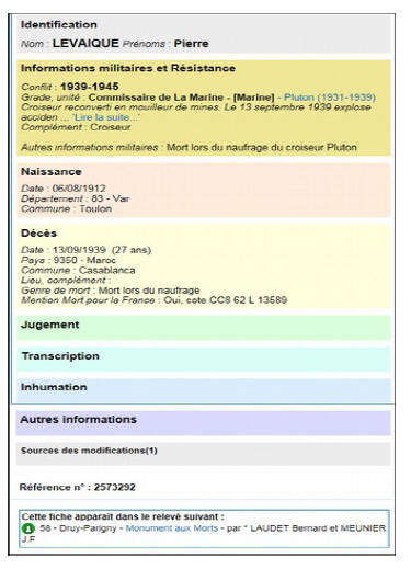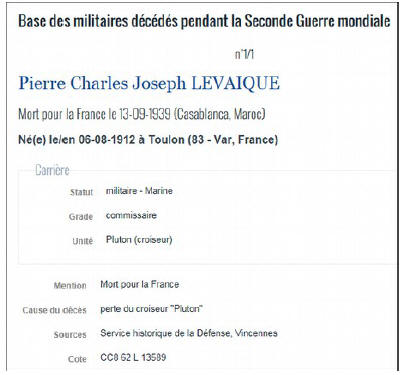 Né le 6 août 1912 à TOULON (Var) - Décédé le 13 septembre 1939 à