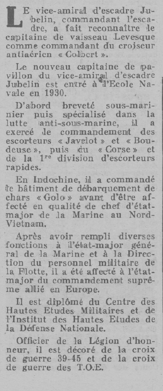 rencontre l'a¬miral Darlan. Désigné au commandement d'un escorteur