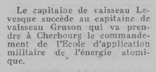 son commandement, le capitaine de corvette Levesque est nommé chef