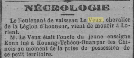 Né le 20 avril 1856 à l' Île d'ARZ (Morbihan) - Décédé en décembre