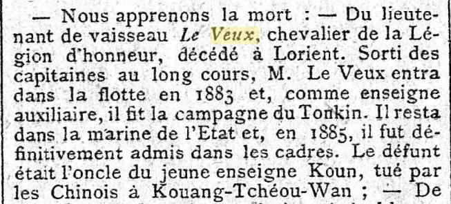 Lieutenant de vaisseau le 18 novembre 1890.