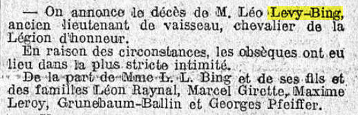 NANCY (Meurthe-et-Moselle) - Décédé le 17 juin 1918 à PARIS XVIème